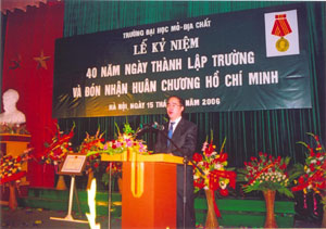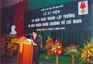 Sáng ngày 15/11/2006, Trường Đại học Mỏ - Địa chất đã tổ chức Lễ kỷ niệm 40 năm thành lập Trường (15/11/1966 – 15/11/2006) và đón nhận Huân chương Hồ Chí Minh - phần thưởng cao quý của Đảng và Nhà nước trao tặng. Thay mặt Đảng và Nhà nước, Giáo sư Nguyễn Thiện Nhân, Uỷ viên Ban Chấp hành Trung ương Đảng, Bộ trưởng Bộ Giáo dục và Đào tạo đã về dự buổi Lễ và trao tặng Huân chương Hồ Chí Minh cho trường.