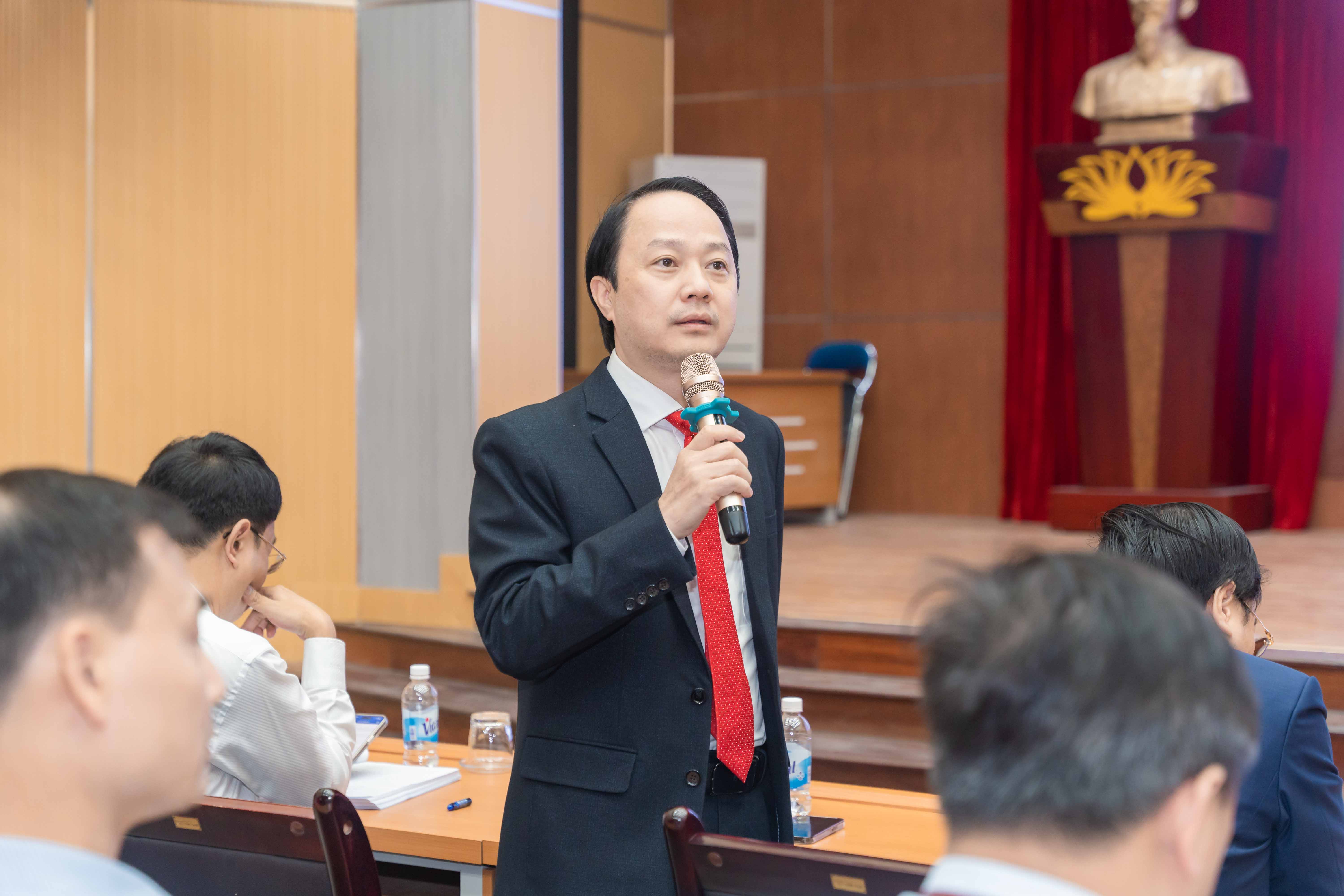 Hưởng ứng tinh thần đó, các đại biểu đã thảo luận sôi nổi, tập trung vào những vấn đề trọng tâm của công tác đào tạo. Nhiều ý kiến từ các khoa, phòng ban nhấn mạnh yêu cầu nâng cao chất lượng tuyển sinh, đảm bảo chuẩn đầu ra ngoại ngữ – tin học – thể chất, hoàn thiện cơ sở dữ liệu dùng chung, đẩy mạnh triển khai E-learning, cũng như cải tiến chương trình đào tạo theo hướng cá thể hoá người học và gắn với nhu cầu xã hội.
