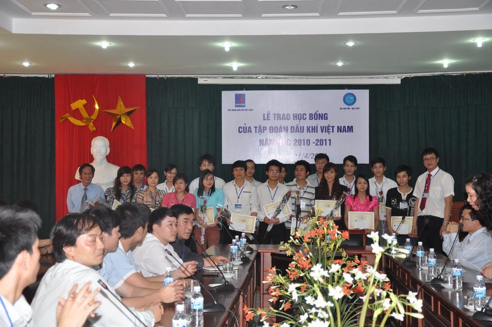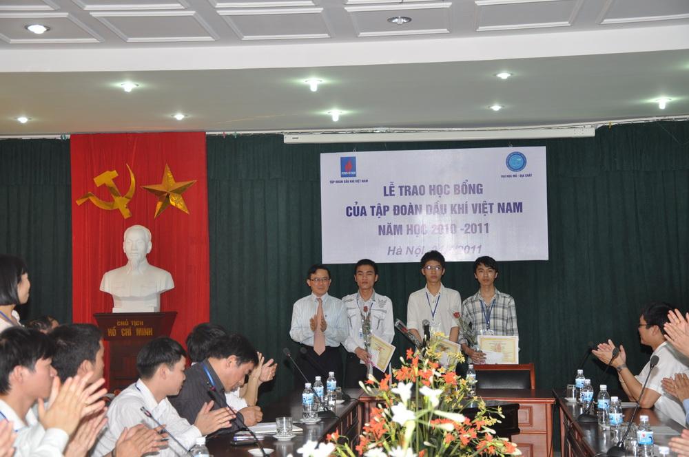Chiều ngày 21/4/2011 tại phòng họp 309, 63 gương mặt xuất sắc của Đại học Mỏ - Địa chất đã được nhận học bổng giá trị từ tập đoàn Dầu khí Việt Nam năm học 2010 - 2011.